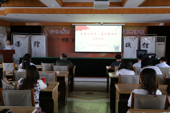 本次“道德培育大讲堂”分为三个部分:《职业道德大讲堂》——郭旭光主任授课;观看《爱岗敬业》电教片;弘扬百年五四精神,《青春心向党•建功新时代》青年代表演讲。